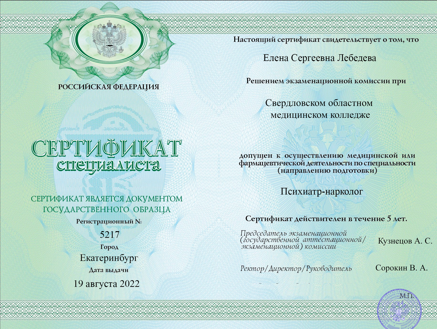Елена Сергеевна Лебедева врач нарколог клиники доктора Стукаловой в Щучьем